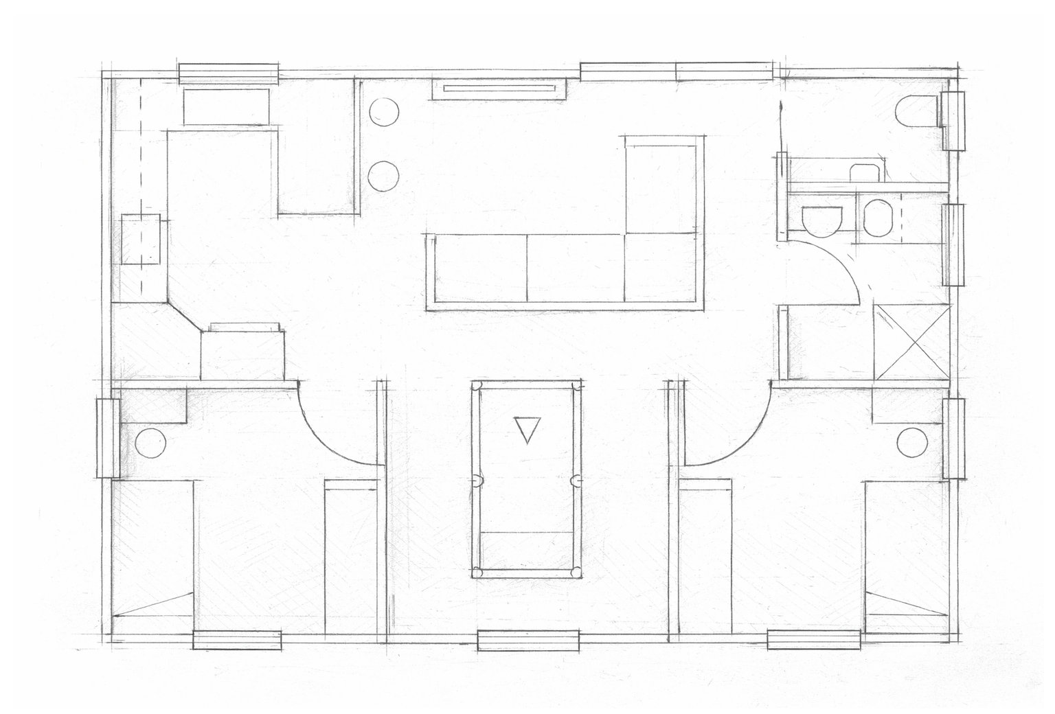 Designed as a teenagers hangout (parents respite). Continuing with two Bedrooms with built in robes, combined Bathroom/laundry, separate toilet, with space for toys like a pool table. Wi-fi throughout.