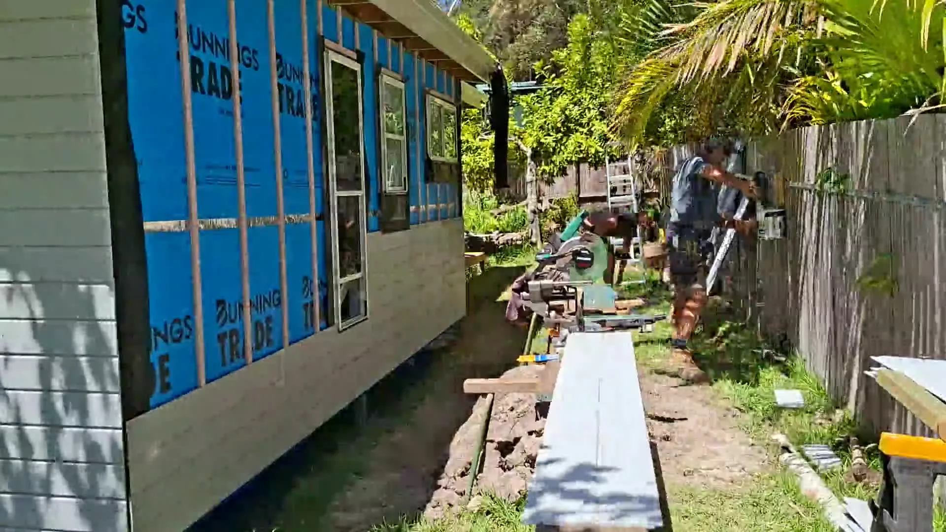 While this video looks like we are fixing weatherboards to the granny flat, if you look closer you will see vertical strips over the wall wrap. These strips are part of a cavity system we have built into the external walls. This cavity and specific wall wrap, are designed to allow a pathway for excess inside moisture to be released outside, ultimately eliminating any mould build up that would be caused by trapping moisture in otherwise impervious walls.